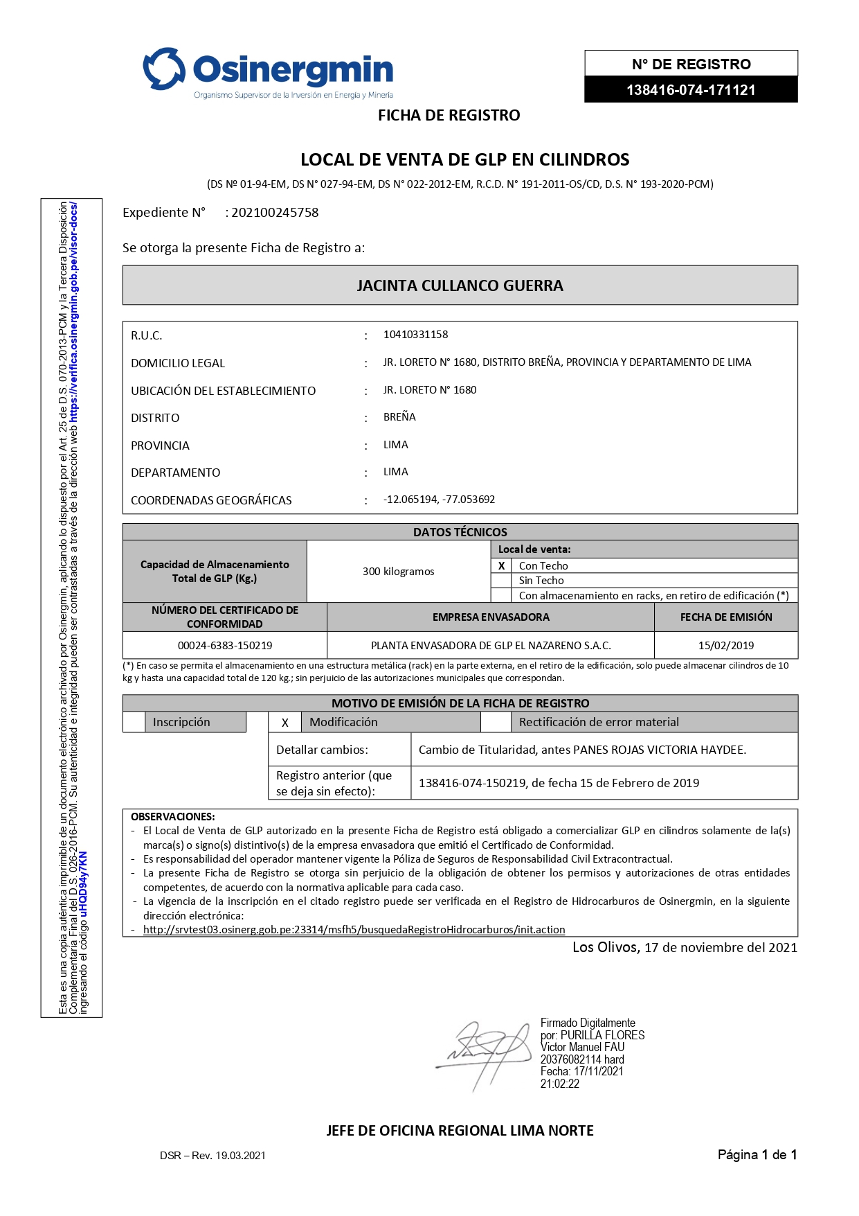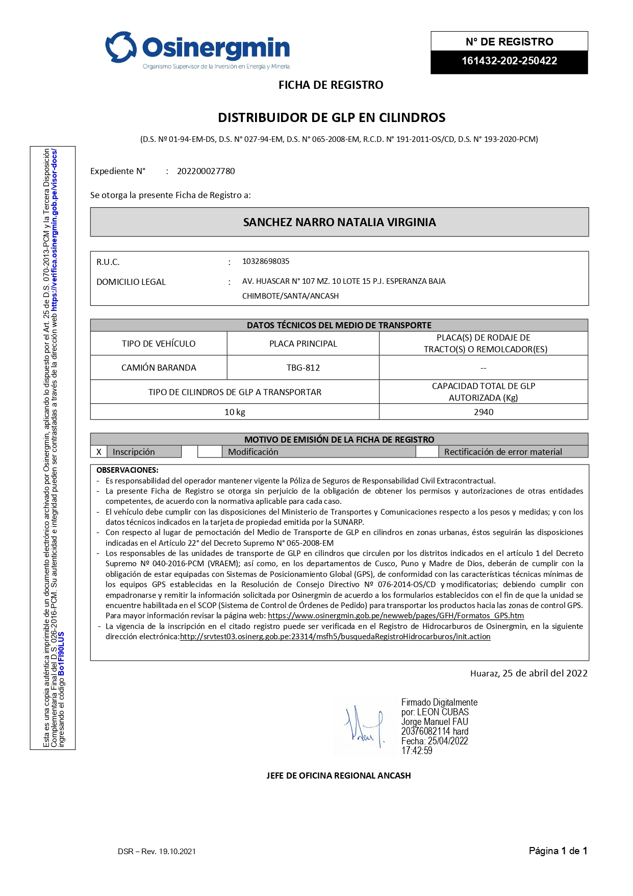 - Levantamiento de suspensiones y cancelaciones de Fichas de Registro de Osinergmin.