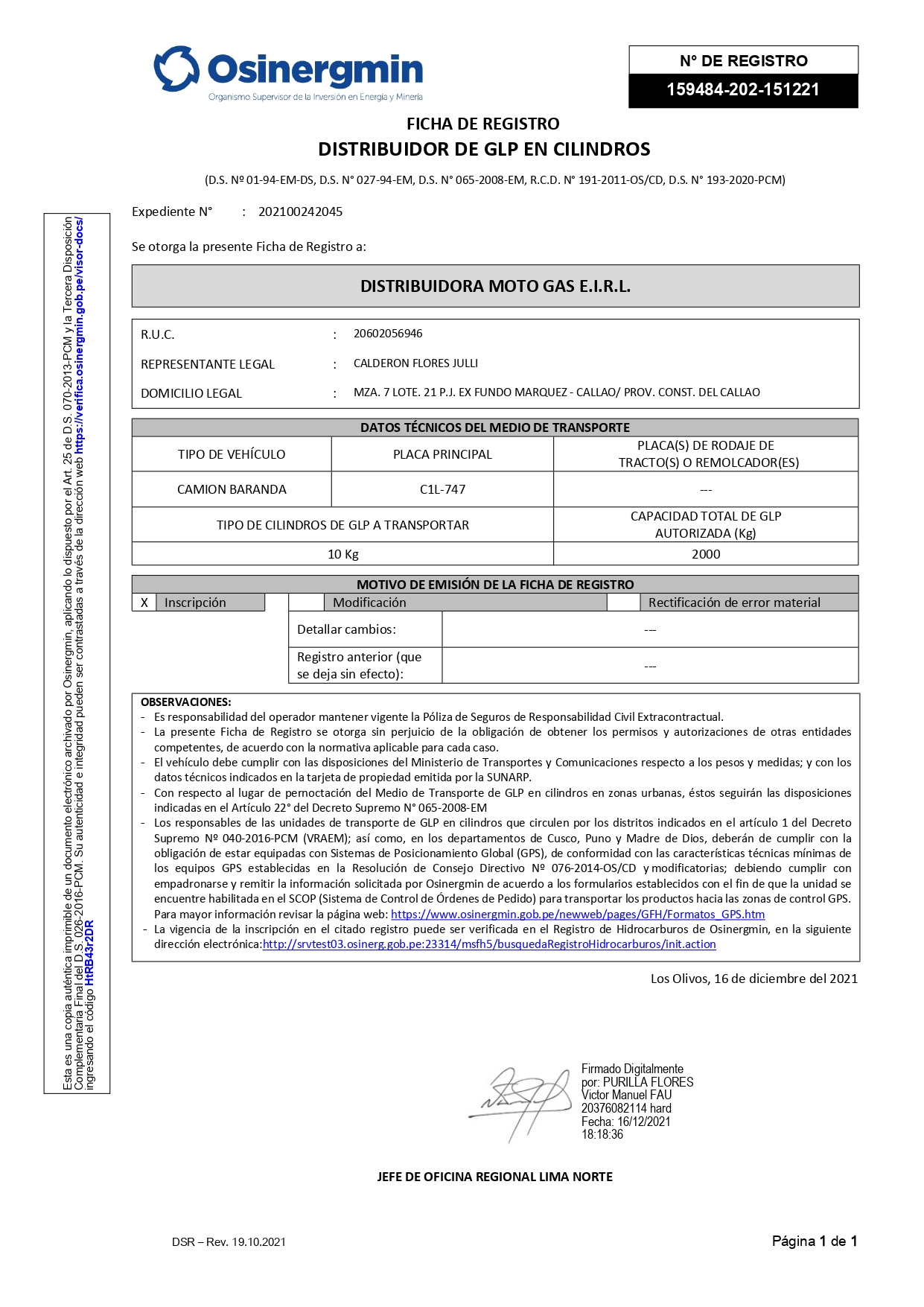“Fue Contacto gas del Sr. Carbajal quien me tramito el permiso de mi camión en Osinergmin y lo consiguió, este trámite no lo pudieron hacer los de planta envasadora en un año. Comentario de Julli Calderón de Distribuidora Moto Gas EIRL desde la Provincia Constitucional del Callao.