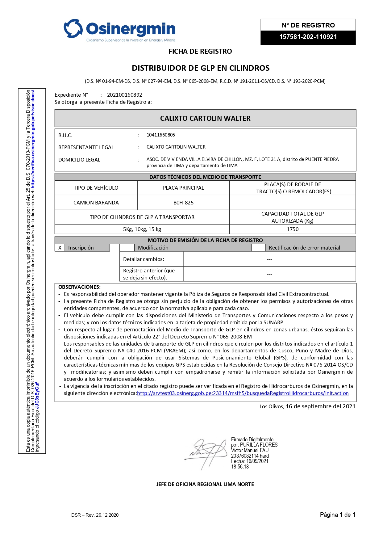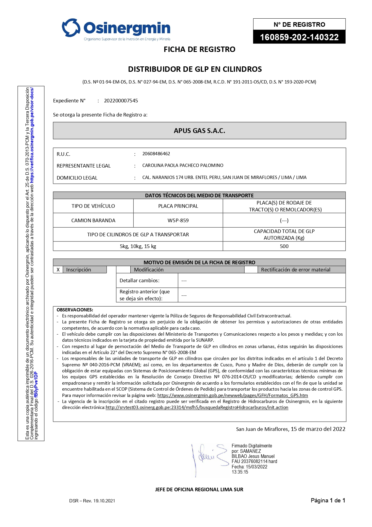 • Tramitamos permisos de Osinergmin para camionetas que transporten cilindros de gas.