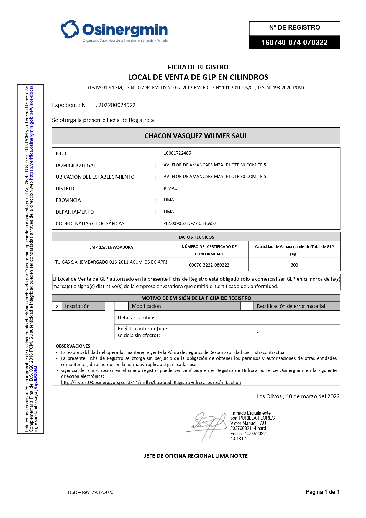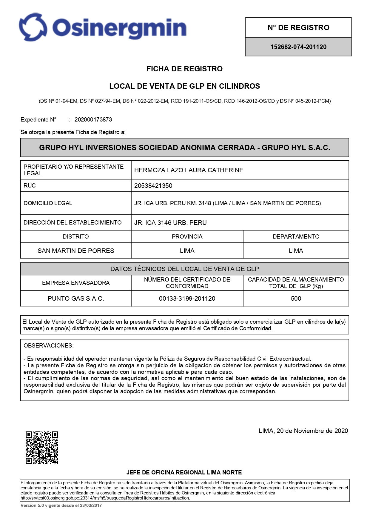 • Tramitamos permisos de Osinergmin para locales de venta