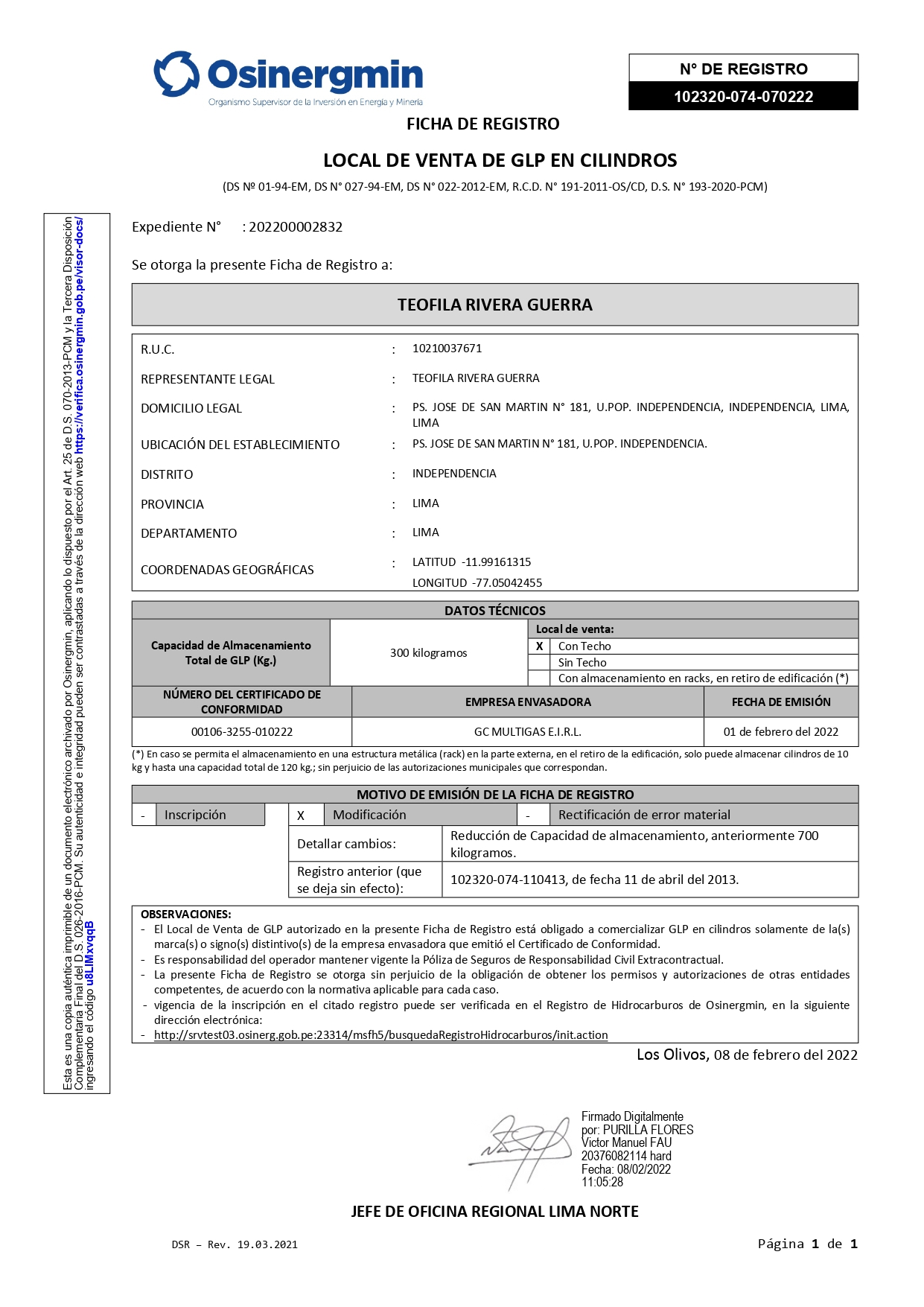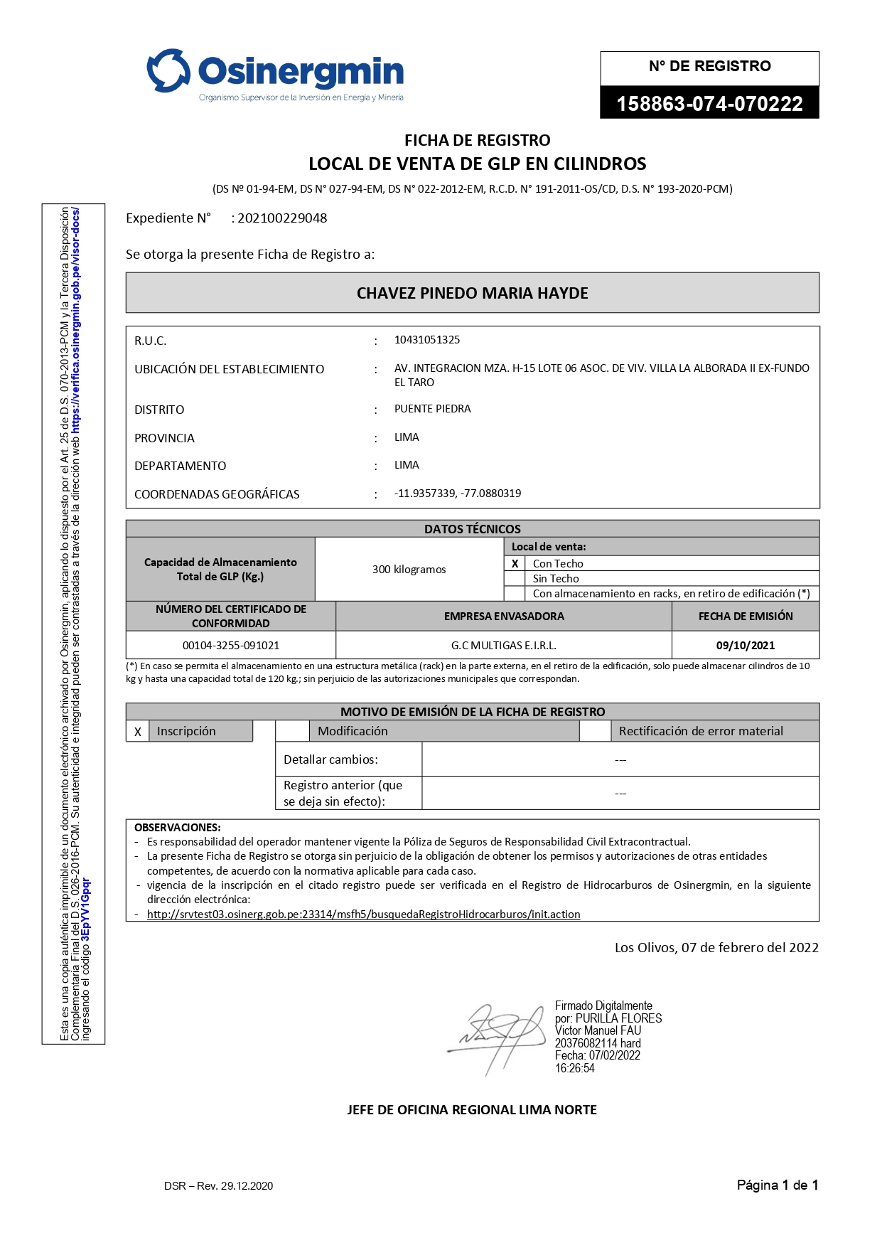 - Multas por comprar cilindros sin hacer uso de la clave SCOP de Osinergmin
